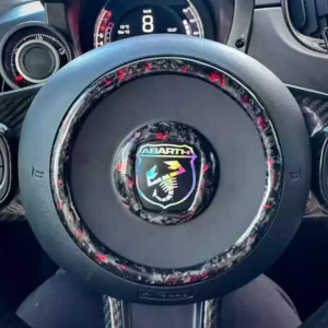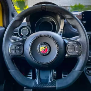 Abarth Steering Wheel Rings: This set includes two pieces—an outer and inner ring—made from carbon fiber and epoxy resin. They enhance the steering wheel’s aesthetics, adding a sporty and exclusive touch to the interior of your Abarth 595.
